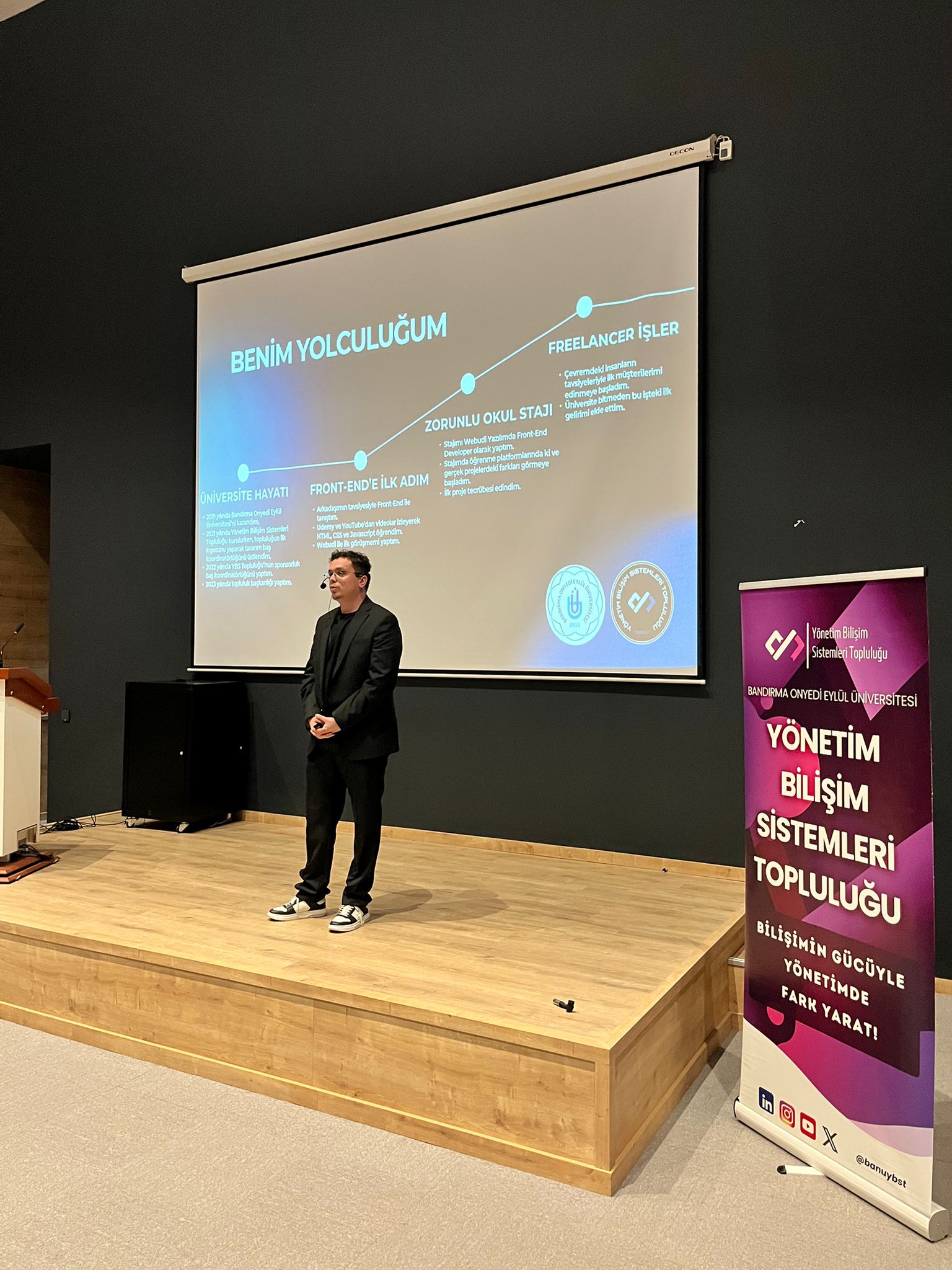 Bandırma Onyedi Eylül Üniversitesi Yönetim Bilişim Sistemleri Topluluğu’nun düzenlediği “Gören ve Üreten Zekâ: Yaratıcılığın Yeni Boyutu” başlıklı konferans, öğrencilerin güncel teknolojik gelişmeleri yakından tanıması ve yapay zekânın farklı alanlardaki etkilerini değerlendirmelerine olanak sağlayan önemli bir etkinlik olarak gerçekleştirildi.